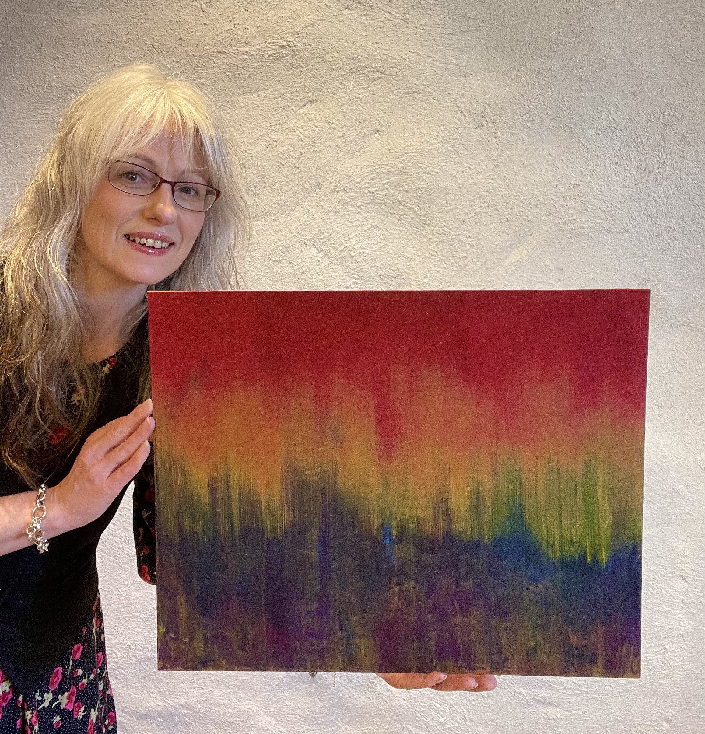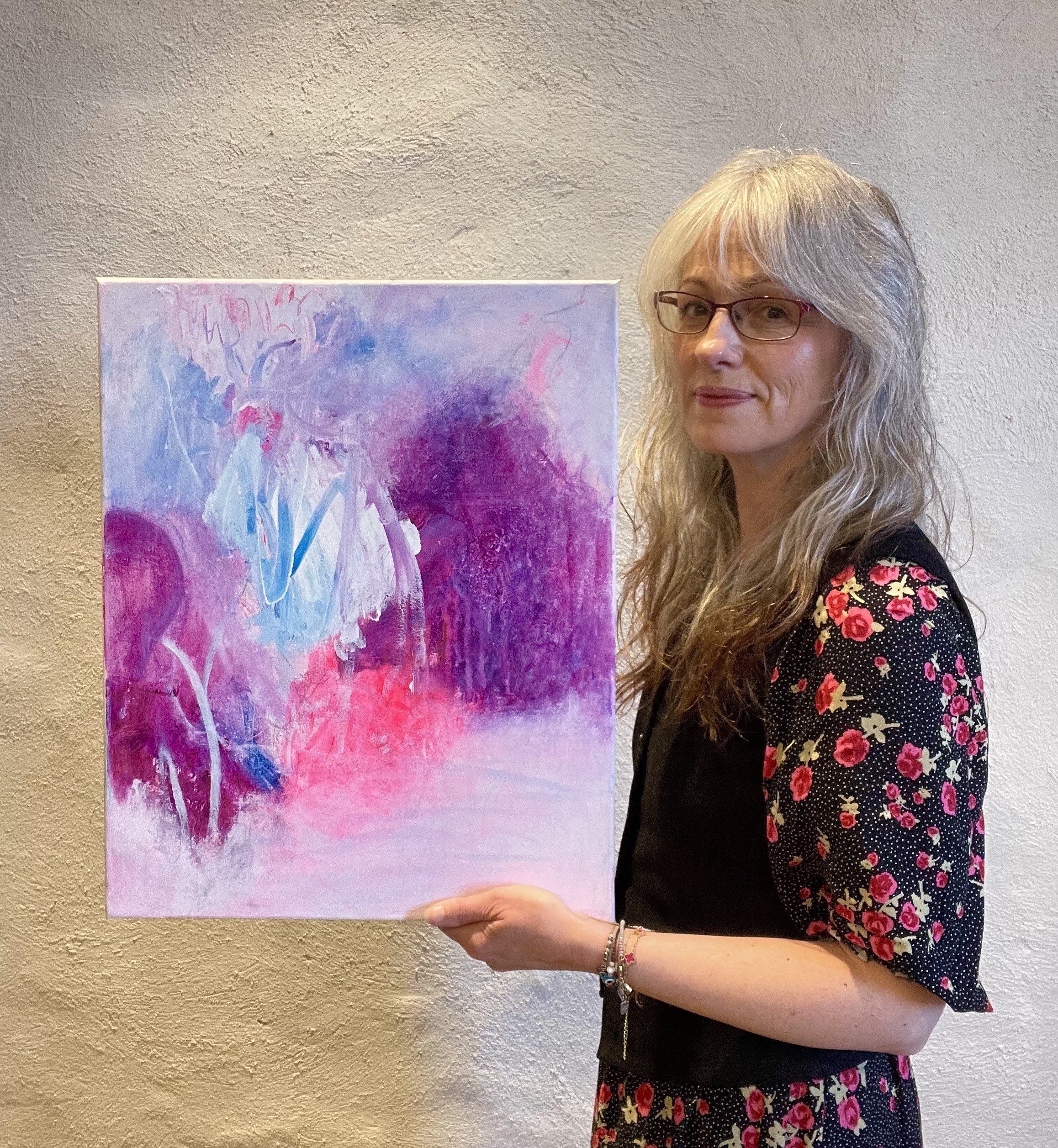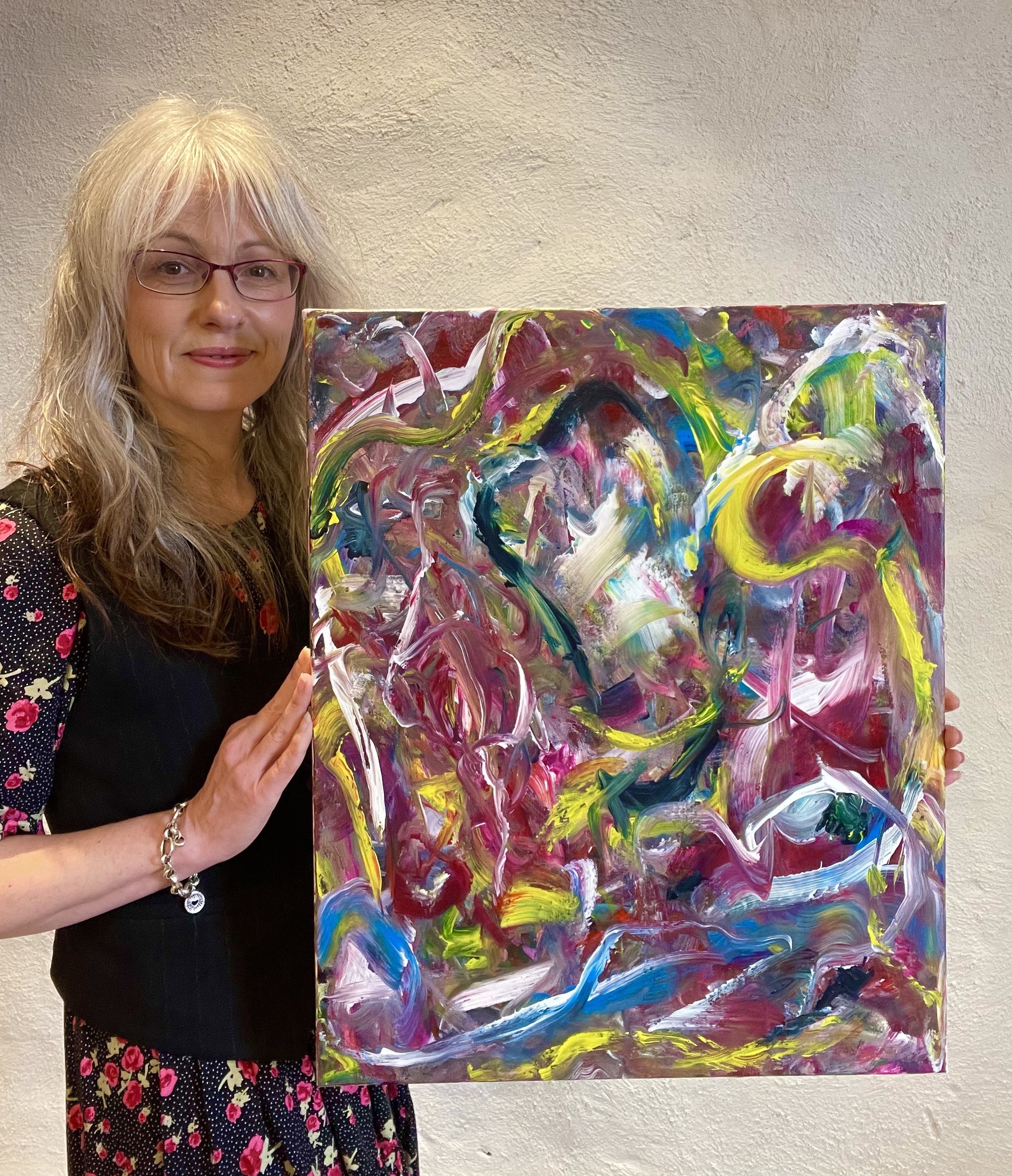 I generally paint spontaneously and sometimes feverishly, creating a sense of drama and movement with strong colours, gestures and heavy-handed smearing of paint. Occasionally, as my soul and mood dictate, I paint more mindfully, dancing with the canvas in a gentle back-and-forth of curiosity-laden ‘what if?’